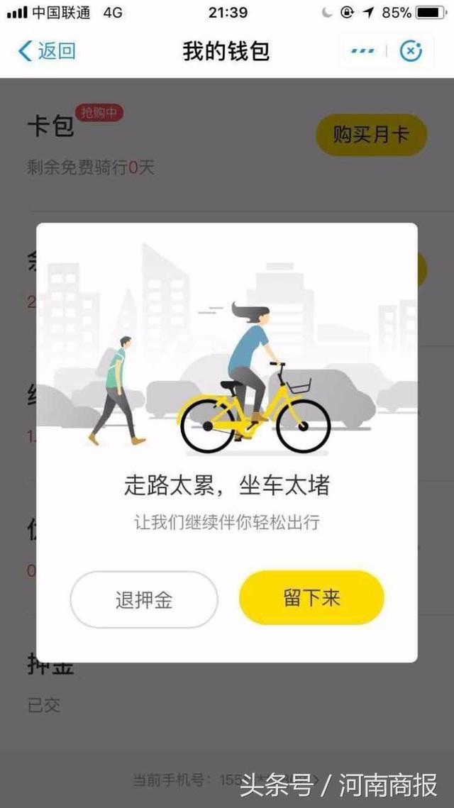 【事件】小黄车退押金提示:再次骑行可能需要交纳更高押金