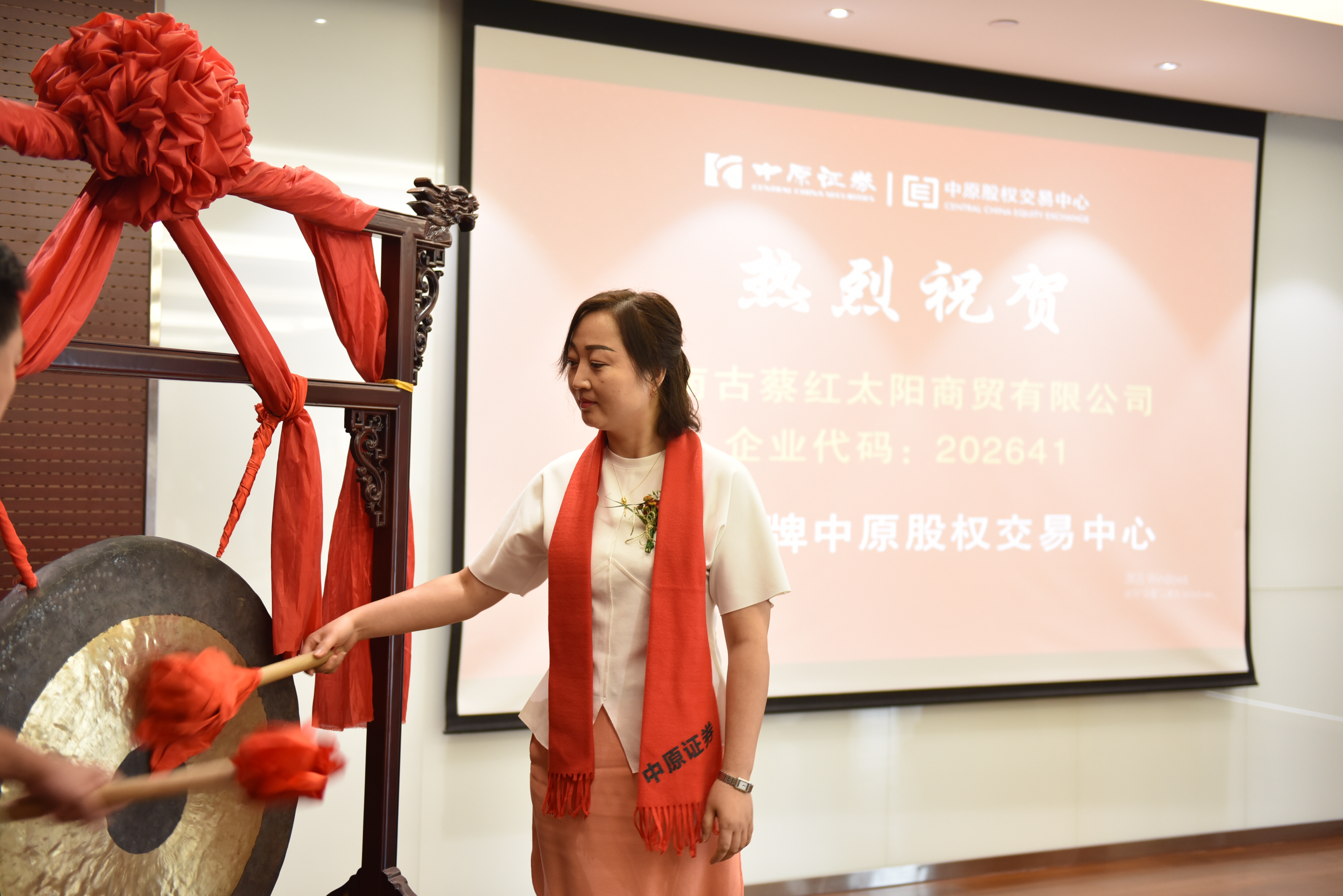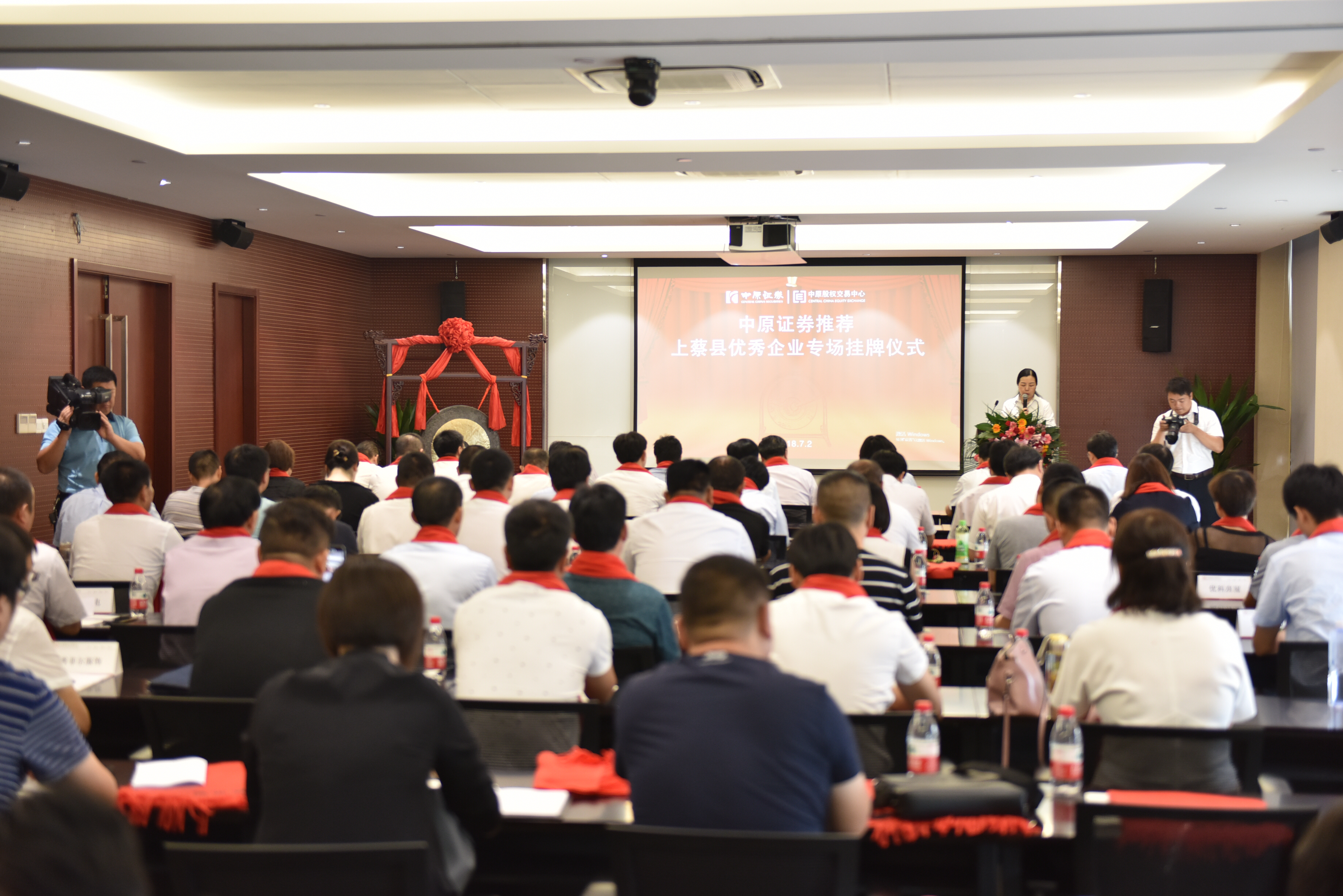 驻马店市副市长贺振华、上蔡县委书记胡建辉和中原证券董事长菅明军以及挂牌企业代表分别致辞。中原股权交易中心总裁史红星为挂牌企业授牌,参会政府领导与挂牌企业负责人共同鸣锣,共同庆祝挂牌成功。