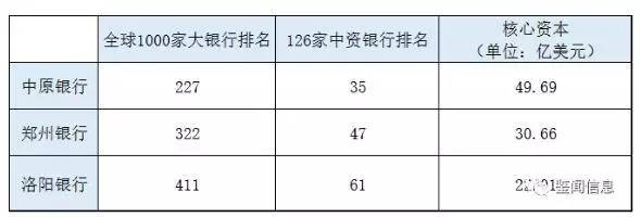 2017年7月3日,2017全球银行1000强发布,126家中资银行成功上榜,数量仅次于美国。其中,中原豫军表现抢眼,三家银行强势入围——中原银行、郑州银行、洛阳银行。业内人士评价,河南金融势力全面崛起!