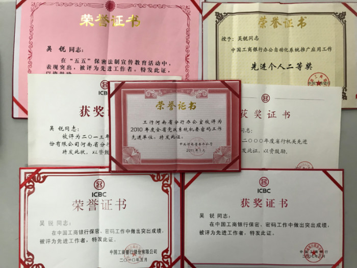 三十多年前,年仅18岁的吴锐带着对军旅生涯的憧憬来到了驻扎在甘肃平凉的步兵63师84806部队。“从我当兵入伍的那一刻起,就已经与‘文件’结下了不解之缘。”吴锐说:“我在部队做打字员的时候,负责的是部队材料的铅字排版、打印,甚至还有一些军事理论试卷一类的材料,很多都是高度保密的。后来转业后在工商银行河南省分行,每天的工作也是和一些保密材料、保密文件、保密事件等工作打交道,是军旅带给了我这份机缘。”