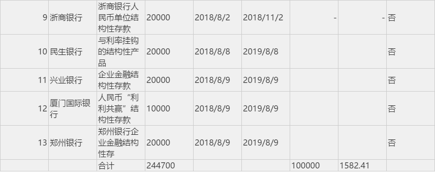 公告显示,双汇发展购买的银行保本理财产品和银行结构性存款期限以短期为主,产品类型为保本保收益型和保本浮动收益型,预期年化收益率在5.0%-5.3%,其购买的银行结构性存款产品类型均为保本浮动收益型,预期年化收益率在4.55%-5.1%。