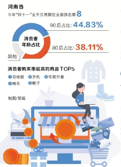 从省内城市消费情况来看,郑州、洛阳、新乡、信阳、南阳,是“双十一”我省消费的TOP5城市。