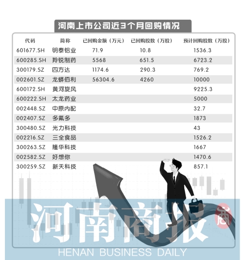 最近3个月河南上市公司有13家已经或准备出手回购自己公司的股票,回购力度最大的公司已斥资超过5亿元,而A股市场今年以来回购公司的数量、回购股票数量以及金额也创下了纪录。