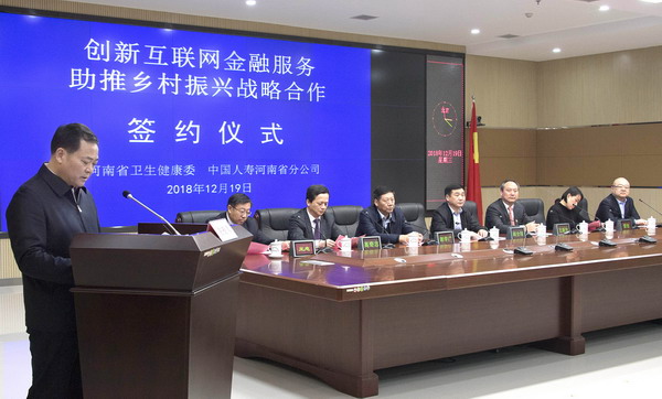 大河网讯 12月19日下午,中国人寿河南分公司(简称河南国寿)与河南省卫健委签署战略合作协议在郑州举行,共同探索“互联网+健康+金融”模式,共谋大战略,同创大健康。这既是中国人寿履行央企社会责任,创新互联网金融服务的政治担当,也是落实国家乡村振兴战略,提升河南农村基本公共卫生服务水平的具体行动。