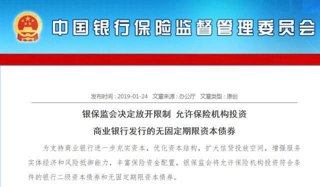 中新经纬客户端1月24日电 据银保监会网站24日晚间消息,为支持商业银行进一步充实资本,优化资本结构,扩大信贷投放空间,增强服务实体经济和风险抵御能力,丰富保险资金配置,银保监会决定放开限制,将允许保险机构投资符合条件的银行二级资本债券和无固定期限资本债券。