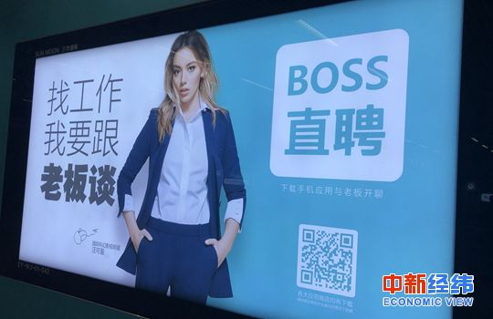 BOSS直聘在北京地铁里的广告 中新经纬 常涛 摄