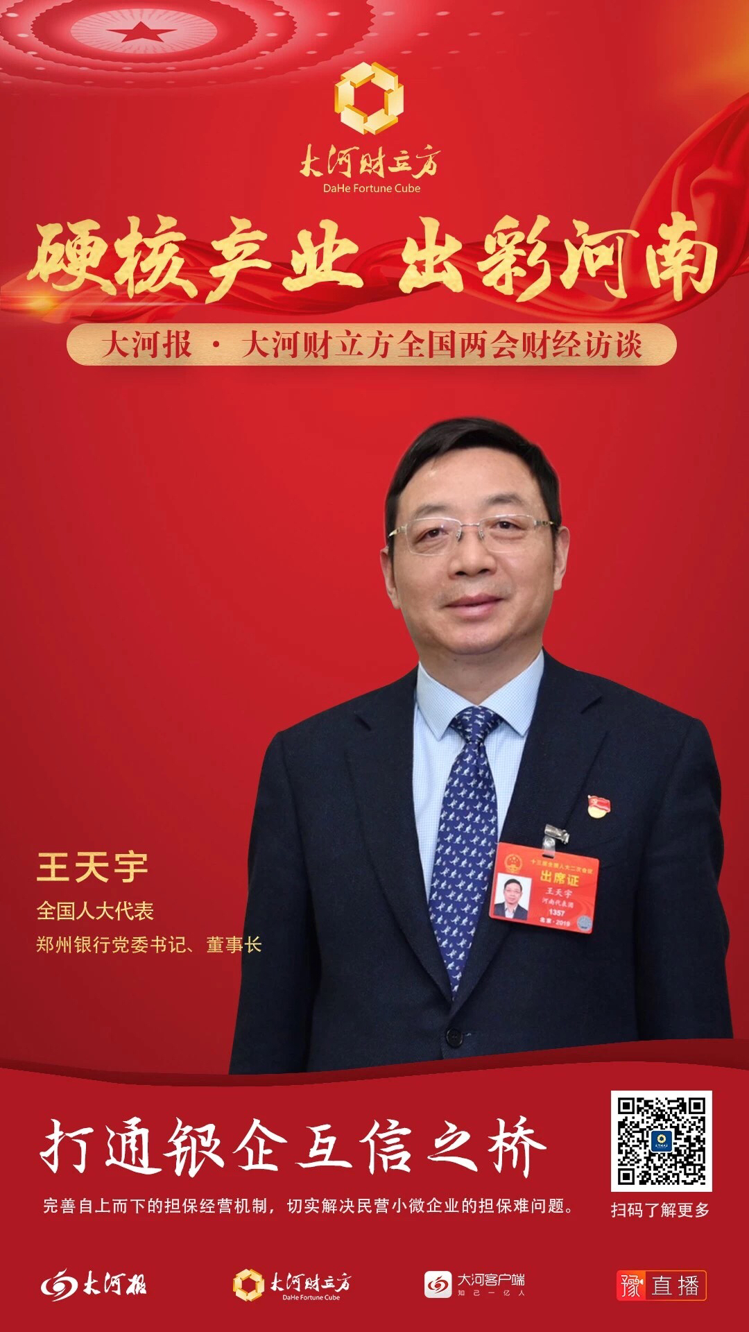 2019年全国两会,代表在分组讨论时热议政府工作报告中有关"支持民营经济"的话题,全国人大代表,郑州银行党委书记、董事长王天宇在接受大河报·大河财立方《极刻》记者采访时表示,河南金融业发展正面临历史性机遇,郑州银行围绕特色转型,在打造"市民银行树品牌、小微银行树典范、商贸物流银行树标杆"三方面不断发力,长期以来在支持地区发展,支持民营企业做大做强方面不断贡献着自己的力量。