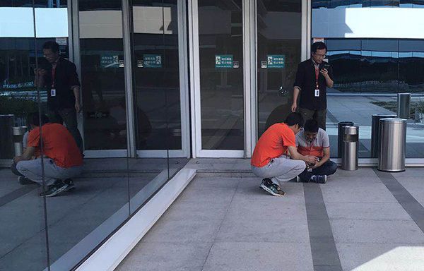 甲骨文同事在安慰被裁员员工,被裁员员工坐在地上。