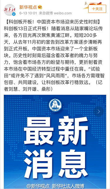 科创板13日正式开板!随着消息从陆家嘴论坛传来,各方目光再次聚焦黄浦江畔。短短200多天,从去年11月初的宣告到改革方案逐步清晰再到正式开板,中国资本市场迎来了一个全新板块。历史性时刻背后蕴含着改革者的魄力与努力,饱含着市场各方的盼望与期待,更折射着资本市场在中国经济转型过程中重任在肩。“试验田”或许免不了遇到“风风雨雨”,市场各方需理智包容、共同建设,让科创板改革行稳致远。
