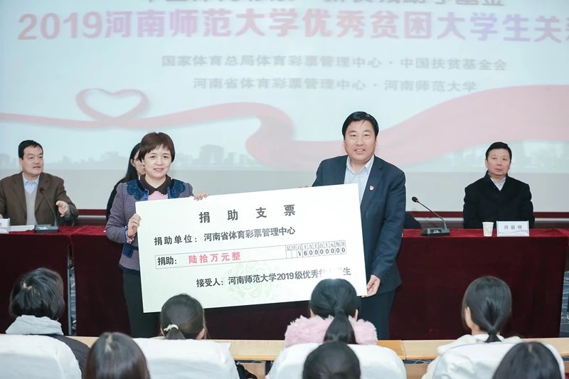 大河网讯 12月11日,2019“中国体育彩票·新长城助学基金”河南站捐助活动在河南师范大学举行。据悉,本次活动对河南师范大学的120名优秀大学生进行捐助,每个受捐助的大学生得到了“中国体育彩票·新长城助学基金”5000元资助。