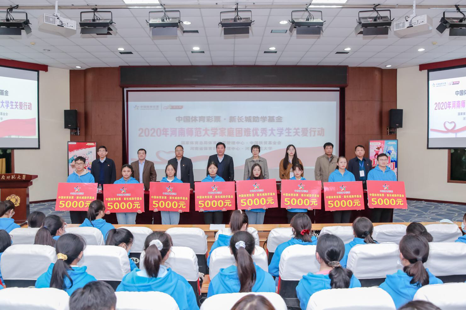(2020年10月,“中国体育彩票·新长城助学基金”向河南师范大学优秀大学生捐助)