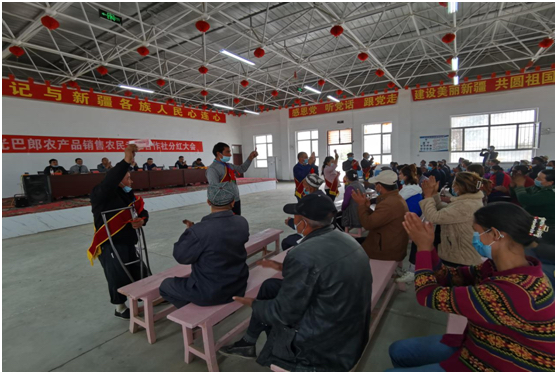 但好名字只是开始,作为合作社,得有领头人,成员怎么选、选谁,入股资金等事宜都需一一落实,就在万事俱备,只欠东风之际,合作社在莎车县市场监督管理局注册登记后,需要合作社成员签字确认之时,合作社的一名成员阿布都喀迪尔·艾麦尔突然不愿意加入合作社了,原因则在于其对网络销售心存疑虑。为此,乌鲁木齐分行扶贫干部驱车奔波百余公里,辗转七个乡村,硬是在距县城50公里远的依盖其镇农贸牛羊市场找到了他,耐心地与他沟通交流,之后他明白了光大银行通过消费扶贫的方式对贫困村扶真贫、真扶贫的良苦用意,对能首批参与合作社坚定了信心,随即一同来到县市场监督管理局签署了确认加入合作社的意见。