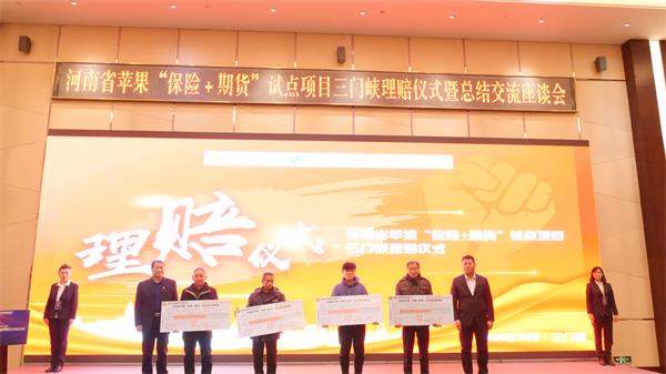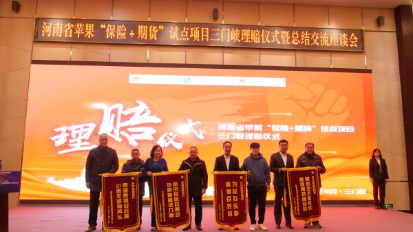 12月30日下午,河南省苹果“保险+期货”试点项目理赔仪式暨总结交流座谈会在三门峡市召开。