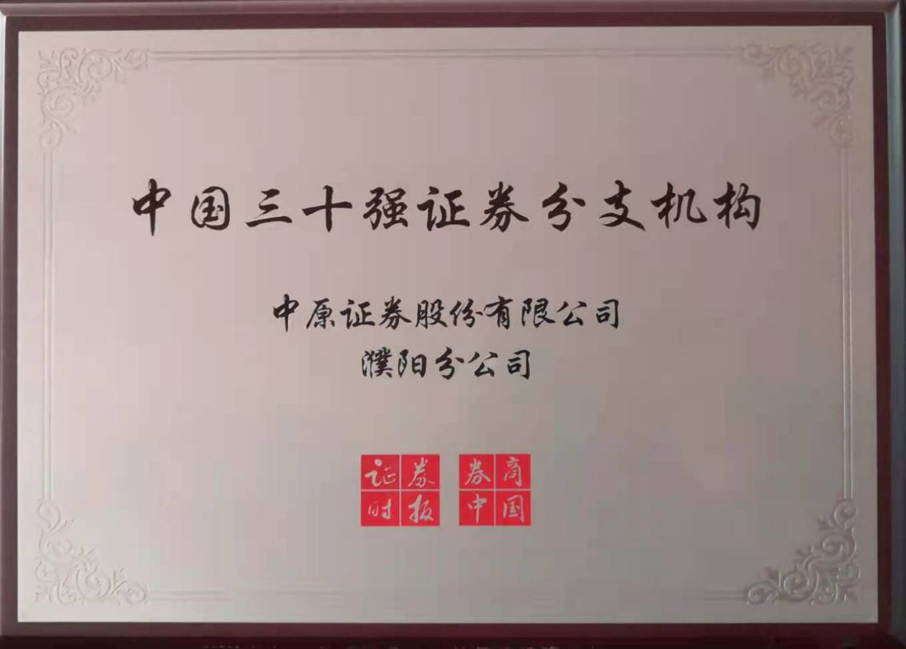 分公司被证券时报评为“中国区三十强证券分支机构”