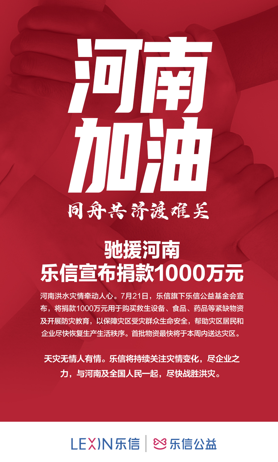天灾无情人有情。乐信将持续关注灾情变化,尽企业之力,与河南及全国人民一道,尽早战胜这场洪灾。