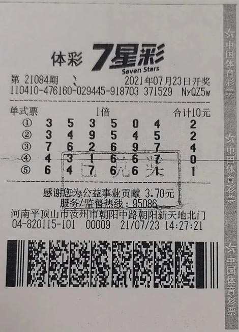 7月23日,第21084期新7星彩开奖,我省平顶山汝州市中出1注一等奖,奖金500万元。