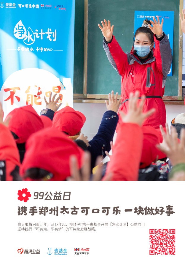 2013年起,郑州太古可口可乐利用遍布全省的网络和资源,在河南实施净水计划,并逐步延展出净水安全小课堂。软硬件两手抓,健康知识和安全意识同步提升。9年来,净水系列公益活动已经为全省98所学校近49000学生带去净水安全呵护,捐助了69台净水设备。