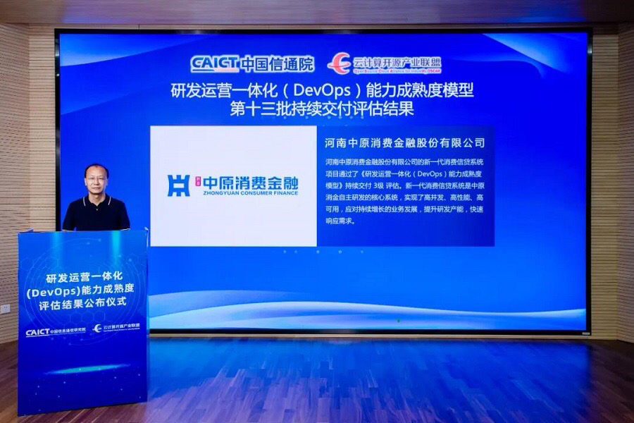9月9日,中国信息通信研究院发布DevOps标准持续交付第十三批评估结果。中原消费金融本次参评项目——新一代消费信贷系统,顺利通过由中国信息通信研究院开展的《研发运营一体化(DevOps)能力成熟度模型》持续交付3级评估。值得注意的是,中原消费金融也是消费金融行业第一家通过持续交付3级评估的企业。