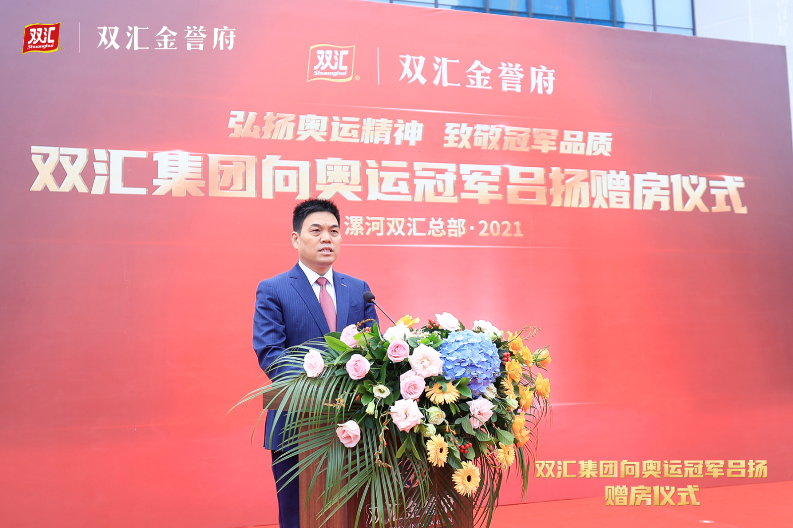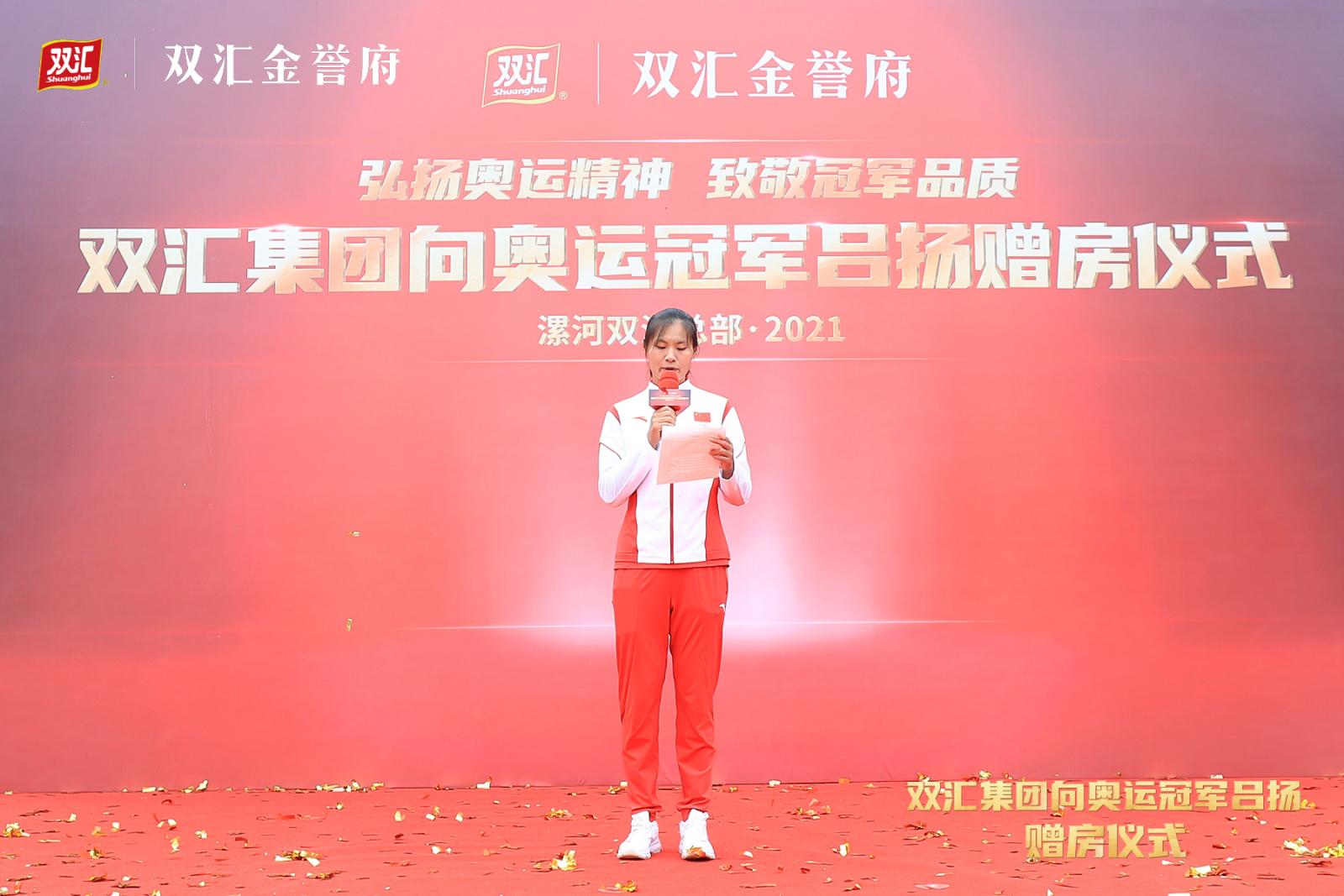 双汇发展总裁马相杰在致辞中表示,东京奥运会上,双汇员工子女吕扬与队友发挥出色,代表中国队以绝对优势夺得了赛艇女子四人双桨决赛金牌,实现了漯河奥运奖牌史上零的突破!他们取得的成绩令人振奋,双汇为漯河走出了这样一位好儿女感到自豪,也为员工吕大伟培养出如此优秀的子女感到骄傲。为弘扬奥运精神,表彰吕扬为国争光,双汇优选一套湖景洋房,对吕扬取得的骄人成绩进行特别奖励,用于支持吕扬的家庭和体育事业,鼓励她在未来的体育赛事上再创佳绩,继续为国家争光、为漯河添彩。