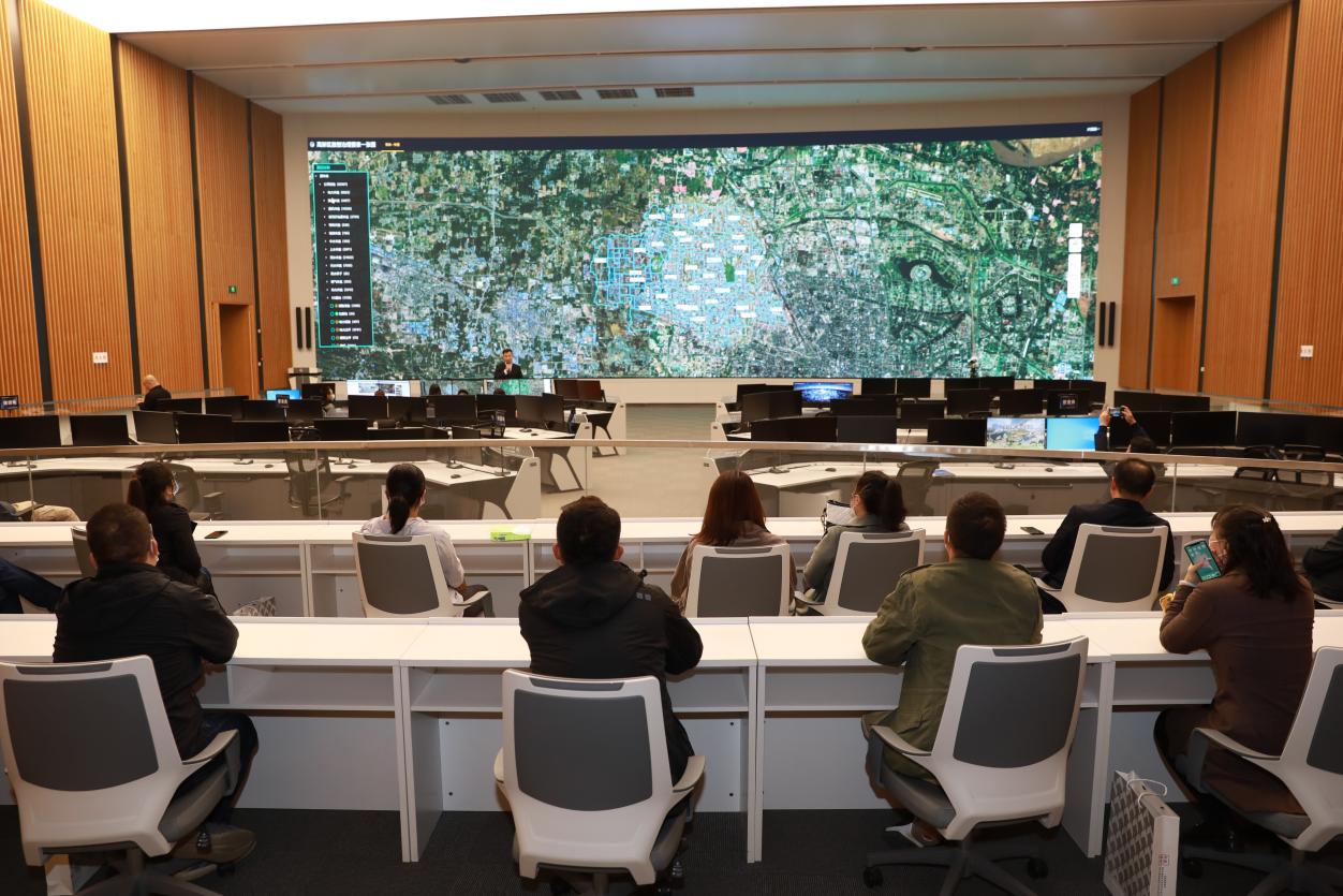 作为郑州高新智慧新城的缩影,郑州(国家)高新区智慧城市实验场是兼备城市运营指挥、智慧产业、企业共享展厅、会议会展、参观体验等多种功能的综合性体验空间。在智慧城市实验场,在工作人员的带领下,媒体平台一行人通过看宣传片、听讲解,详细了解了高新区利用大数据推进数智治理、智慧交通、智慧医疗、精准扶贫、GIS地图等智慧城市建设应用的最新成果。