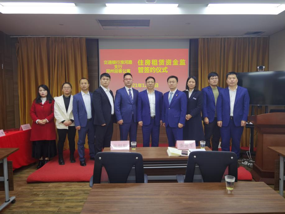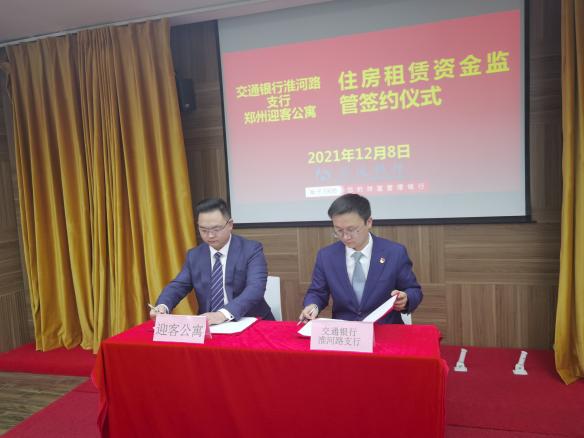 大河网讯 12月8日,交通银行淮河路支行与郑州迎客公寓签署资金监管协议。双方将合作开展住房租赁资金监管业务,积极推动租赁行业规范发展,实现银企共赢。