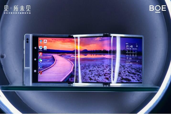 f-OLED展区内,BOE(京东方)带来了12.3英寸柔性AMOELD仪表总成、三折OLED整机产品、动态360°折叠显示、滑卷产品、腕带手机等一系列柔性显示产品。