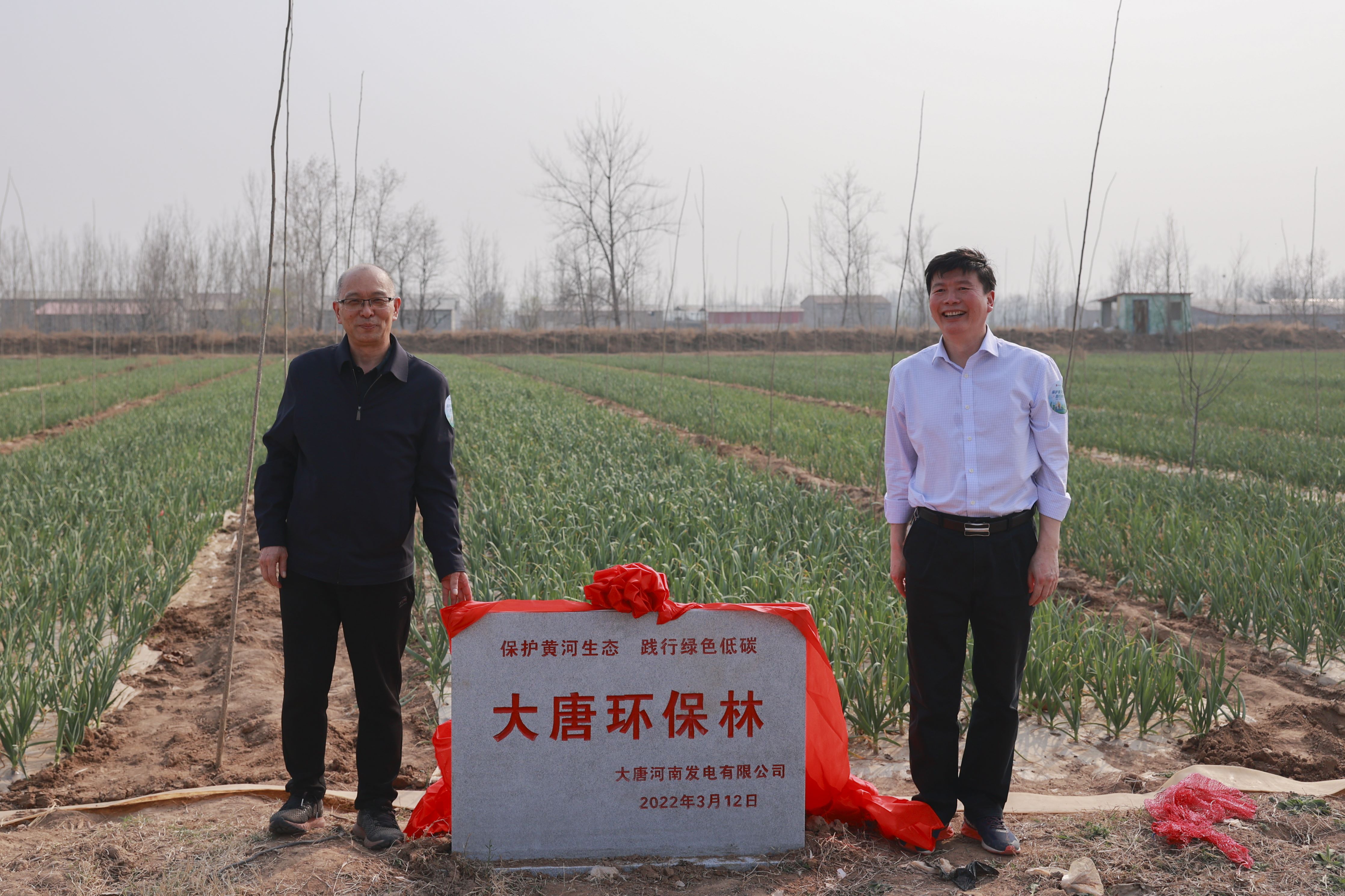 随后,在参与人员的共同见证下,赵峰和王永民共同为“大唐环保林”揭牌,将活动推向高潮。