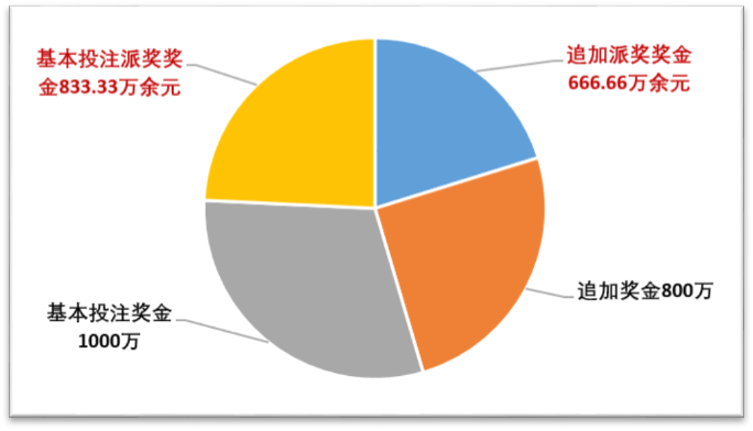 需要注意的是,只要进行追加投注且单张购彩金额15元及以上即可参与本次派奖活动,多期票在派奖期间按期参与(追加投注且单期购彩金额15元及以上)。从本期一等奖的出奖情况来看,如果采用2元基本投注,中得一等奖的奖金和常规情况一样,为1000万元;而符合本次派奖参与条件后,除了中得当期1800万元追加投注一等奖之外,还分得了1500万元的派奖奖金,实现了“一等奖单注奖金近3300万元”的幸运。