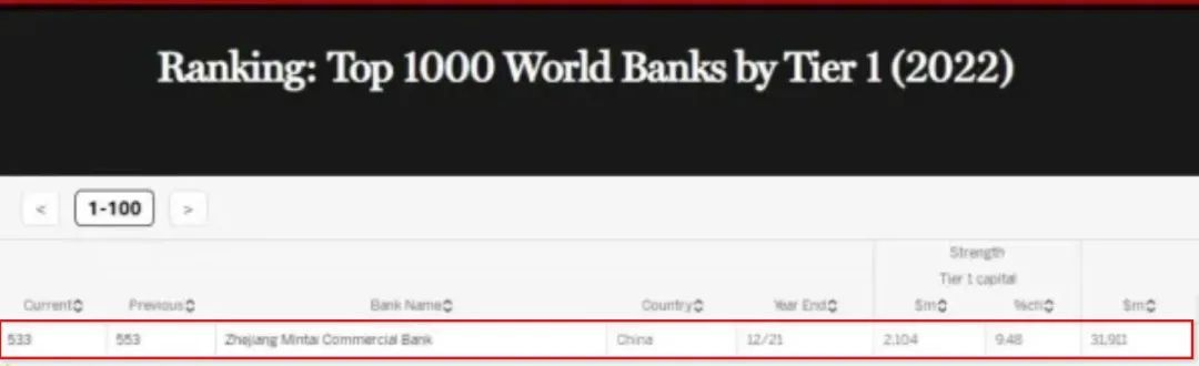 民泰银行较上年跃升20位