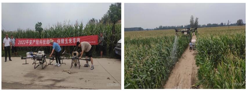 秋粮抗旱灌溉过程中,各地持续高温高湿的田间环境易诱发各类病虫害,玉米田间生长个头较高的实际情况也为农户人工喷施农药增添难度。为解决生产难题,平安产险河南分公司结合政府及农业生产实际情况,通过植保无人机飞防作业,有效达到治虫、防病、增产的效果,稳守粮食安全底线,确保粮食增产、农民增收。