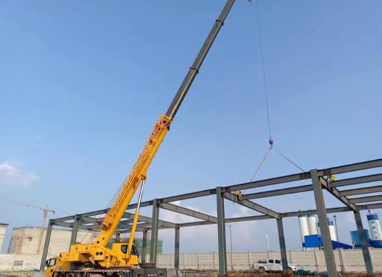 工作人员安装变电站空楼钢结构框架 吴彪琪 摄