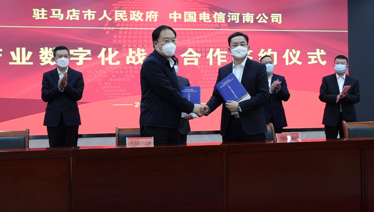 大河网讯 12月13日上午,驻马店市人民政府与中国电信河南公司产业数字化战略合作协议签约仪式举行,双方围绕政务信息化、数据中心、5G应用、智慧城市、产业数字化融合等领域开展全方位合作,建设数字驻马店,推动驻马店市经济社会高质量发展。驻马店市委书记鲍常勇,市委副书记、市人民政府市长李跃勇,市领导李建超、孙继伟、杨大群及中国电信河南公司党委书记、总经理石三平等出席签约仪式,签约仪式由杨大群主持。