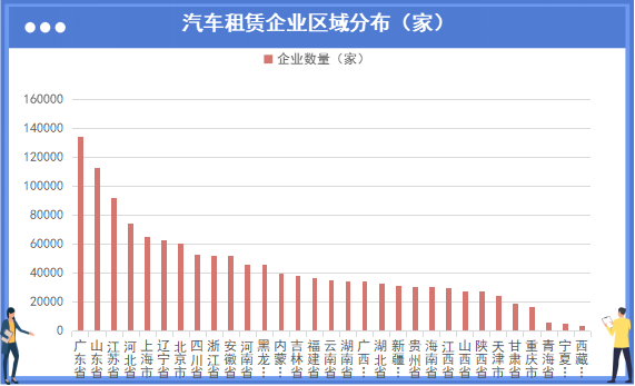 根据天眼查的数据显示,广东、山东、江苏、河北、上海成为拥有租车公司数量前五的省份,从分布图可以看出,省份常驻人口数量多少、经济发展程度、旅游资源丰富程度是主要的决定因素。