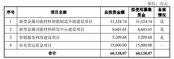 润际新材本次公开发行股票的数量不超过1,959万股,不低于发行后总股本的25%,均为公开发行新股,不涉及公司股东公开发售股份的情况;具体发行股数以中国证监会注册的数量为准。润际新材原拟募集资金60,138.07万元,分别用于新型金属功能材料智能制造升级建设项目、新型金属功能材料研发中心建设项目、营销服务网络建设项目、补充营运资金项目。
