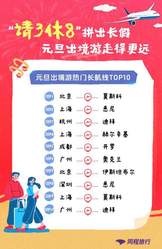 从元旦假期热门出境游航线来看,热门短途出境航线TOP10包括上海-新加坡、北京-首尔、成都-吉隆坡、广州-清迈、南京-巴厘岛等;热门长途出境航线TOP10包括北京-莫斯科、上海-悉尼、杭州-迪拜、上海-赫尔辛基、成都-开罗、广州-奥克兰、北京-伊斯坦布尔等。