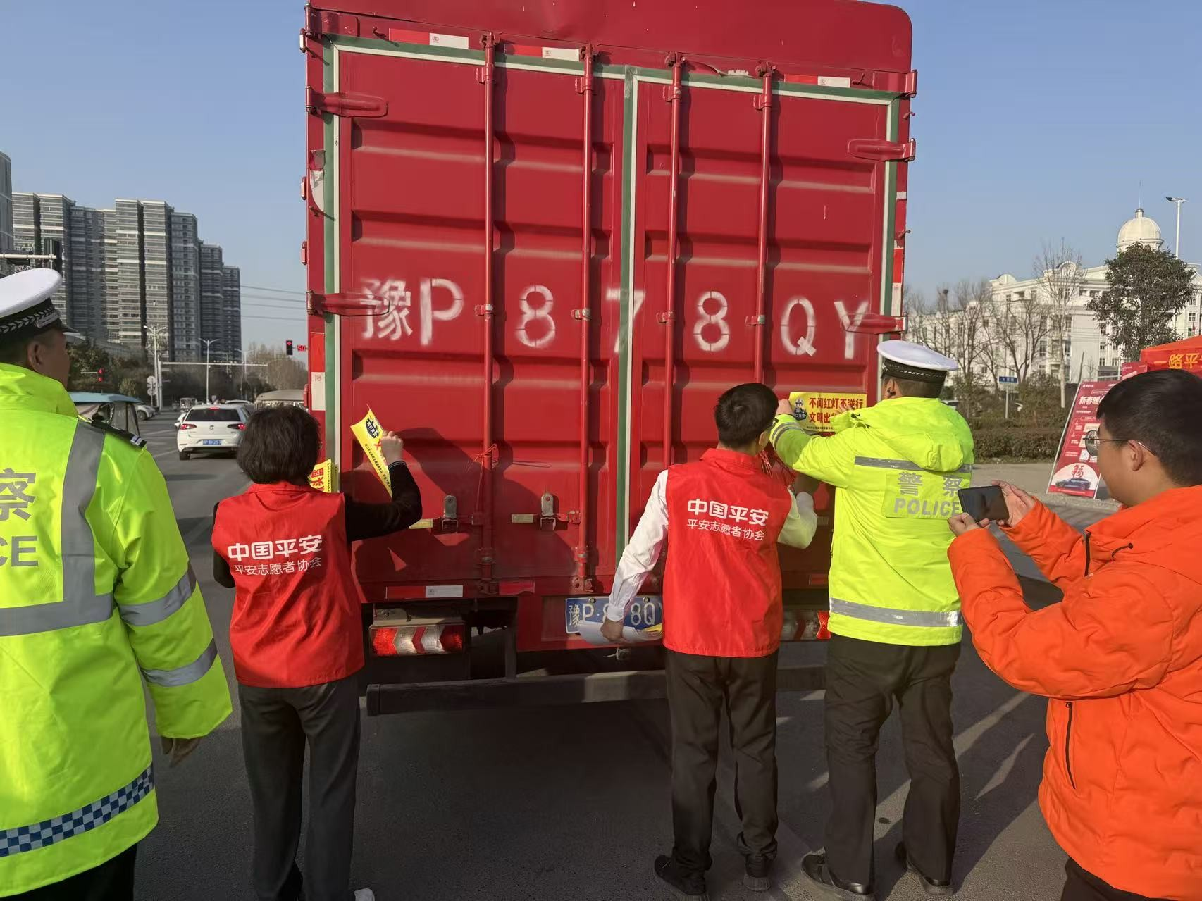 大河网讯 为切实筑牢春运道路交通安全防线,践行金融企业社会责任,助力平安河南建设,近日,平安产险河南分公司联合当地交警部门,聚焦春运出行高峰,在全省11个重点路口集中开展2026“万家灯火平安行”春节风险减量公益行动。活动以事故预防服务为核心,面向电动车驾乘人员、快递环卫从业者、货车司机等重点群体,开展交通安全宣教、赠送安全头盔、统一粘贴反光标识等公益服务,以实际行动守护群众平安回家路。