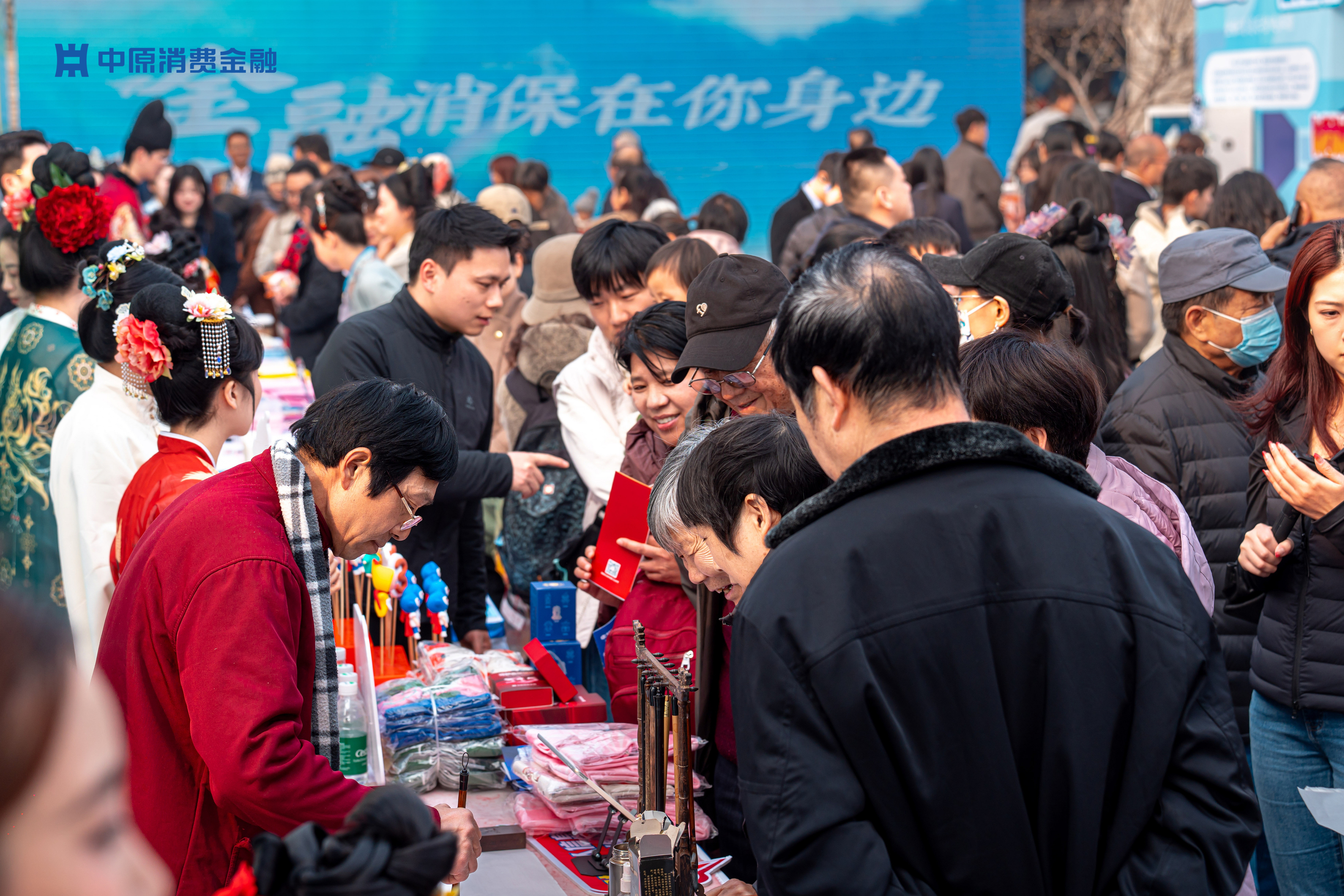 中原消费金融还设置了消保知识宣传区,摆放了各类消保宣传折页、海报,内容涵盖金融消费者八项基本权益、防范非法集资、警惕代理退保骗局、个人信息保护等多个方面。中原消费金融志愿者身着古装,始终以专业、热情的态度,向现场观众传递消保理念,为观众讲解个人信息泄露的风险隐患、防范金融诈骗的实用技巧,以及金融消费者享有的合法权益,将专业的金融知识转化为通俗易懂的语言,让观众听得懂、记得牢、用得上。