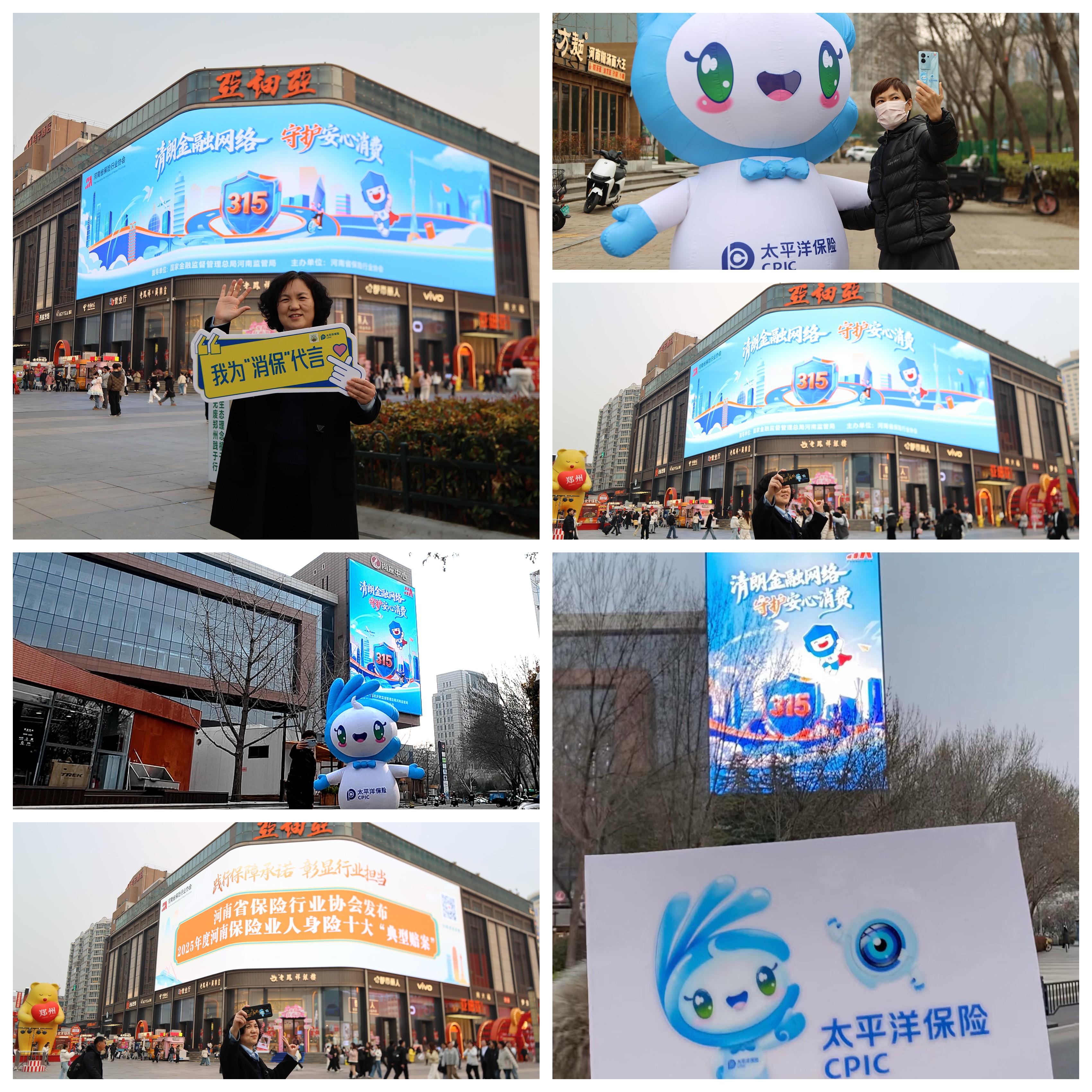 在财产险公司方面,中国太保产险河南分公司组织员工身着吉祥物服装、手持主题打卡牌在地标大屏前与市民互动合影,带动社交平台传播;平安产险河南分公司拍摄打卡活动短视频,线上线下联动吸引市民参与,活动稿件获多家媒体刊发;太平财险河南分公司在亚细亚商圈,将金融消保宣教融入主题打卡活动;中华财险河南分公司在亚细亚、尚座中心地标处设置专属打卡点,通过发放宣传折页、小礼品等形式提升消费者参与度;华泰财险河南省分公司员工累计拍摄打卡作品20余个,分公司员工参与活动占比达80%以上;华安保险河南分公司、大家财险河南分公司、紫金保险河南分公司、锦泰保险河南分公司组织分公司各部门及郑州地区各机构员工积极参与活动,并带动客户、消费者共同打卡。