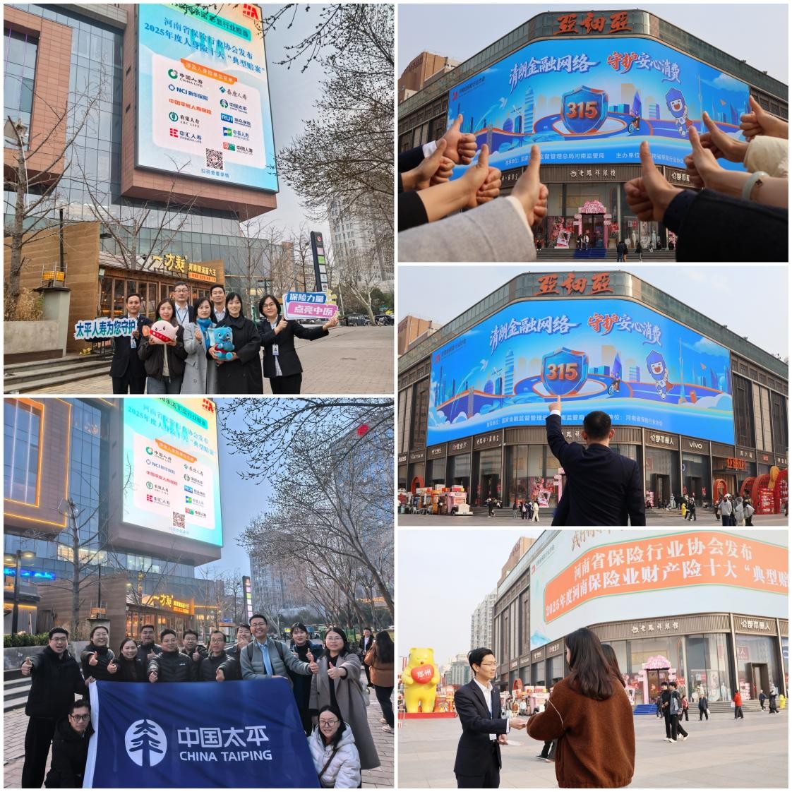大河网讯 春和景明,使命在肩。在2026年“3·15”金融消费者权益保护教育宣传活动期间,河南省保险行业协会启动“保险力量 点亮中原”点亮地标主题系列宣传活动,以城市地标光影为媒,向社会公众传递保险温度与责任担当。作为系列活动的首个重要节点,3月13日至15日,郑州市二七广场亚细亚卓悦城大屏与郑东新区省政府地标尚座中心大屏双地标同步亮屏,每日循环播放主题内容240次,日均触达流量200万人车次,通过科技光影与主题灯光秀的创新融合,全方位展现河南保险业的良好社会形象。各保险机构积极参与活动,通过“线上打卡+线下互动”的形式,组织公司员工、保险从业者和广大消费者前往地标拍照打卡,发布在社交媒体二次传播,形成行业联动、全民参与的热烈氛围。