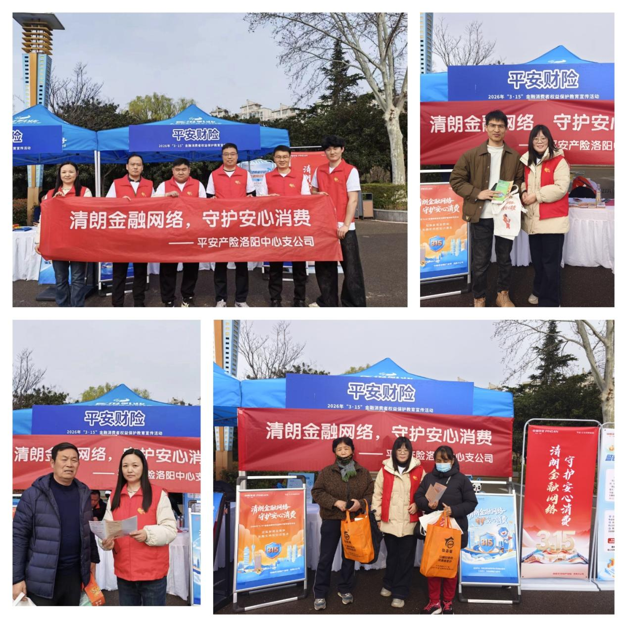 与此同时,平安产险洛阳中心支公司在公园内的金融消保宣传展区,宣传志愿者们耐心解答市民关于保险理赔、消费者权益保护等方面的疑问,并通过案例讲解、互动问答等形式,帮助过往市民识别和防范常见的无资质引流、非法代理退保理赔、银行卡盗刷等金融网络乱象,引导市民提升风险防范意识,保护自身合法权益。