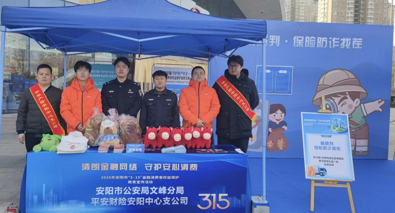 大河网讯 为深入贯彻落实金融为民理念,切实提升社会公众金融素养与风险防范能力,3月15日上午,2026年安阳市“3·15”金融消费者权益保护教育宣传活动在文峰万达广场隆重举行。本次活动以“清朗金融网络 守护安心消费”为主题,由国家金融监督管理总局安阳监管分局、文峰区人民政府联合指导,多部门协同主办,平安产险安阳中心支公司作为核心协办单位全程参与,以专业服务与暖心宣教助力市民筑牢金融安全防线。